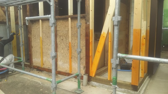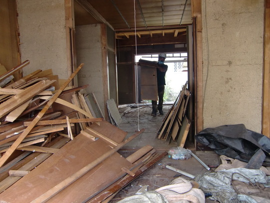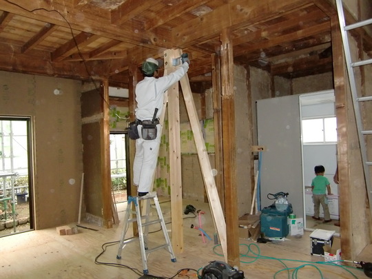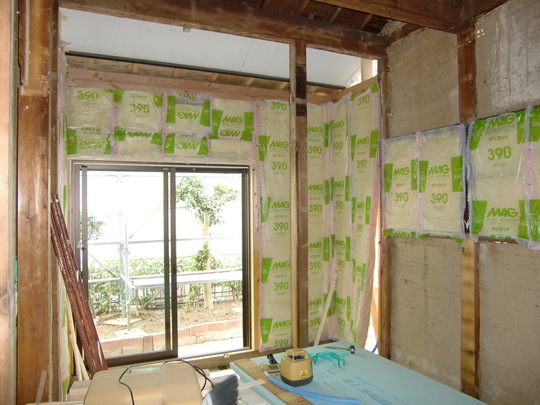 既設土壁以外の室内の外壁周りに断熱材を入れ、耐震補強とともに断熱補強も配慮した施工です。(^^)v