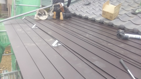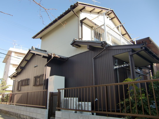 既設の外壁板金に塗装した場所と新規で板金を張った場所との違いが分かりませんね。(^^)