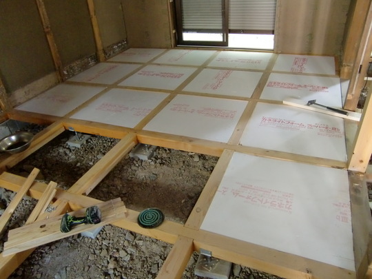 外壁廻り同様、1階の床に断熱材を入れます。(^^)v