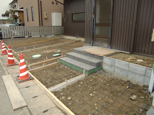 室内では器具付が進んでますが、同時に外部は駐車場の土間コンクリートの段取りが出来ました。(^^)v
