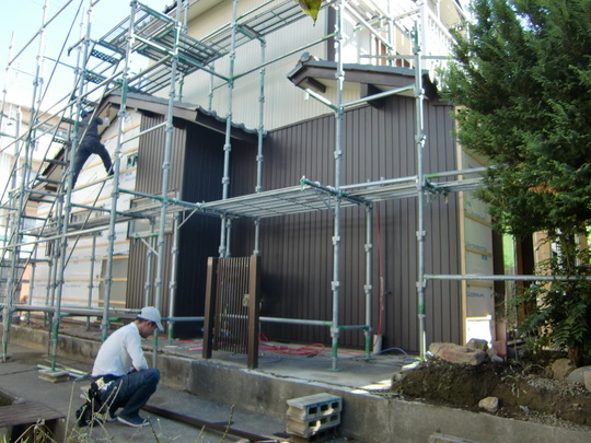 台風が続いてますが、外部塗装と外壁板金の各種工事が進んでおります。