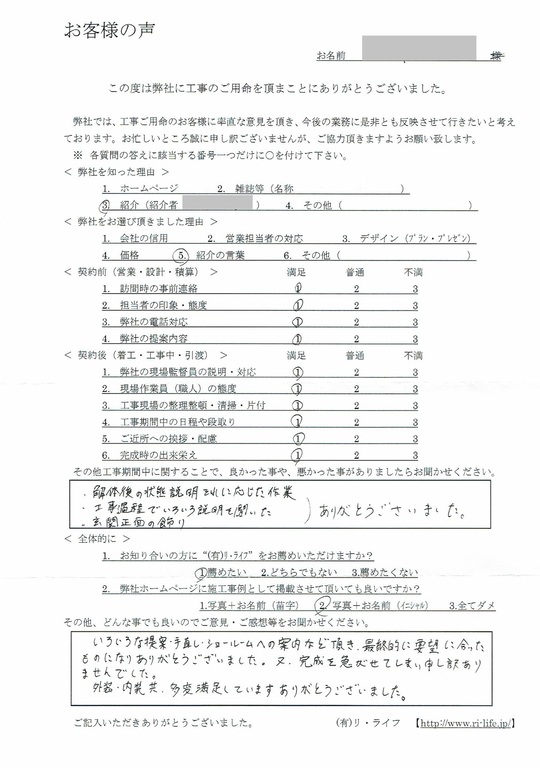 上記の通り、年末にリノベーション工事を終えたお客様から嬉しいお言葉をいただきました。