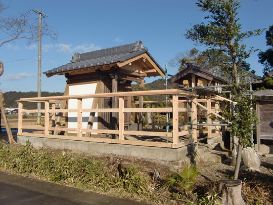 弊社近くのお寺の秋葉堂という建物の屋根改修と外柵取替えの工事中です。近所で依頼があることは嬉しい限りですね(^^);