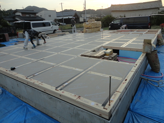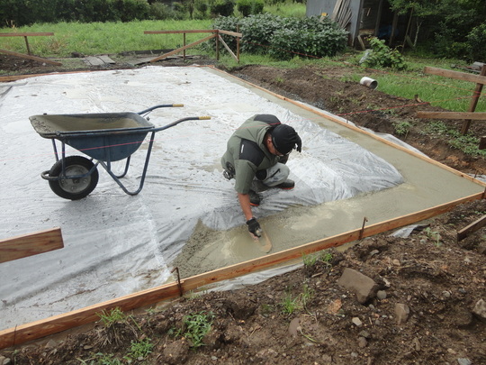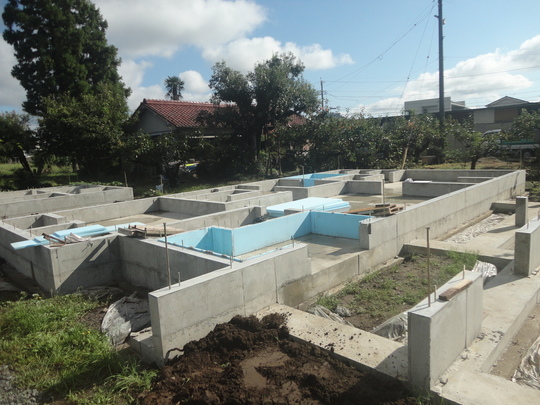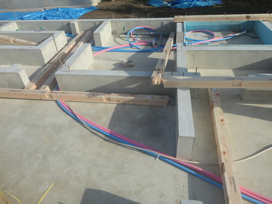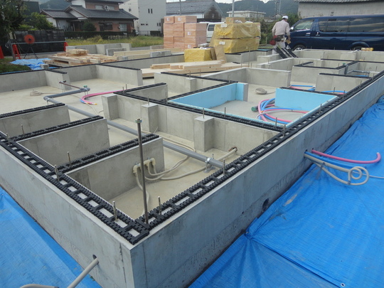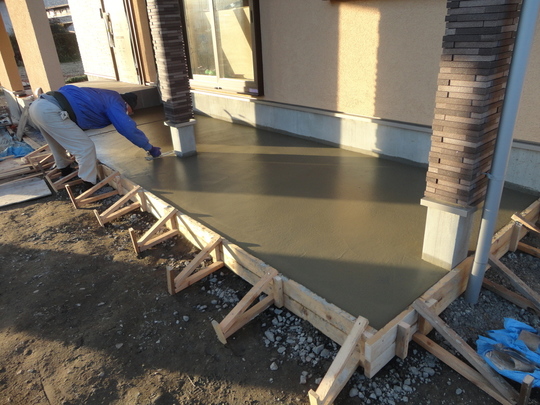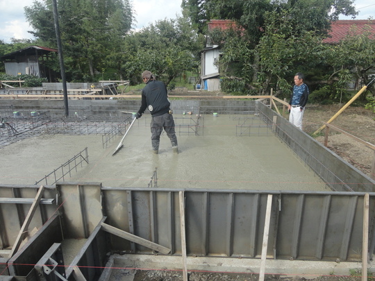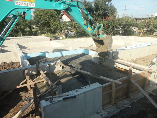 基礎工事の最後は玄関と浴室の下地コンクリートを打設し完了。(^^)v