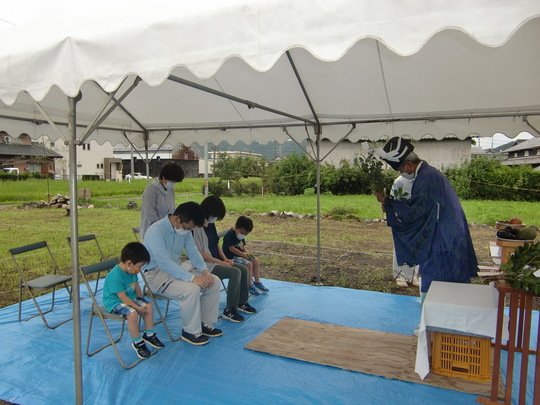 着工前に地鎮祭をして、土地の守護神に土地利用の許しと工事の安全祈願をしました!