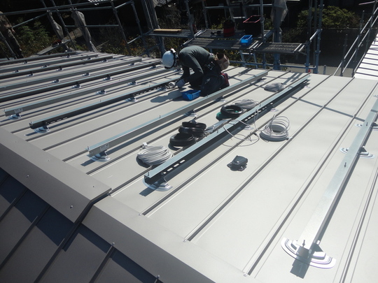 太陽光発電パネルの下地レールはこんな感じで施工されます。(^^)/