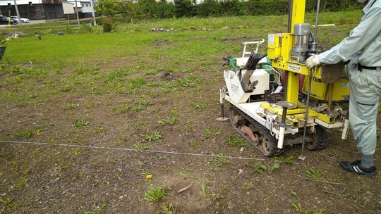 契約前の見積り時に地盤調査を行います。地盤補強の有無で予算に関係しますからね!