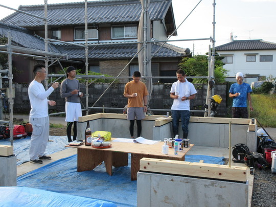 いよいよ建前開始!安全作業&無事上棟を願い乾杯。(^^)v