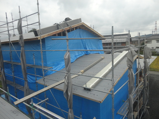 屋根防水ルーフィング貼りが完了すると、すかさず屋根材の搬入です!