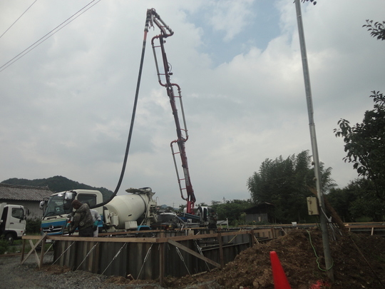 生コン車とポンプ車を手配し、ベースコンクリート打設を行いました!