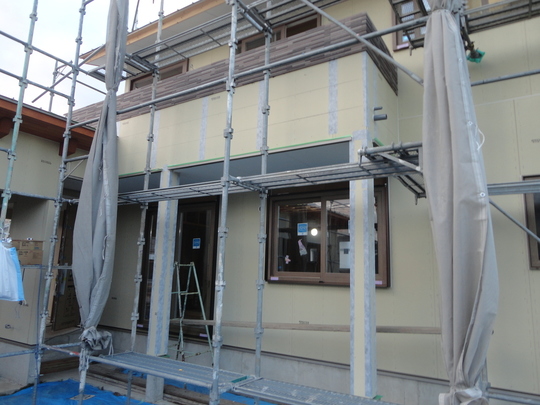 外壁下地の無塗装サイディング貼りが進んでおります!