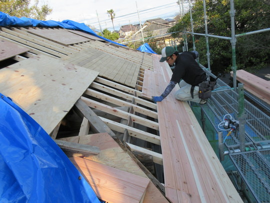 南面はほとんどの屋根材を取替えしました。部分的に新品ですね!